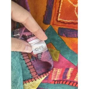 The Vintage 80s Georgiou Studio Colorful Sleeveless Tank Top in Size 6P is a unique and vibrant piece perfect for any occasion. With a geometric pattern and a colorful design, this top exudes a fun and bold 80s vibe. Made of lightweight rayon fabric, this pullover tank features a boat neck neckline and a classic fit, making it a versatile and comfortable option for summer, fall, or spring. Ideal for travel, parties, or casual outings, this top is a statement piece that is sure to stand out and make a colorful addition to any wardrobe. Excellent Condition