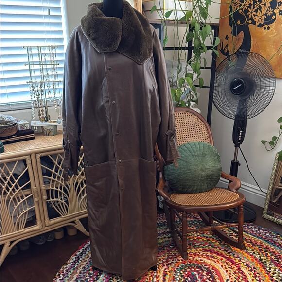 Vintage 80s Gerard Babin Paris Chocolate Brown Leather Faux Fur Lined Maxi Coat
