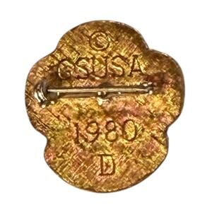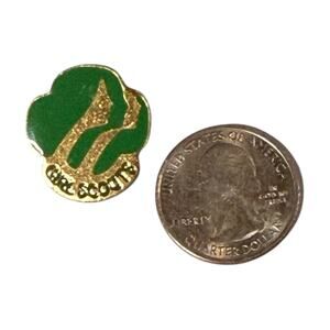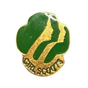 Vintage 80s Girl Scouts Lapel Pin Gold Tone Green Enamel USA Made