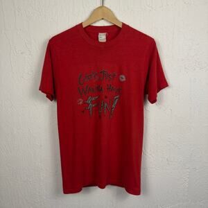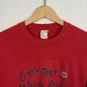 Vintage 80s Girls Just Wanna Have Fun Cyndi Lauper Red Tee Size Medium Rock Band