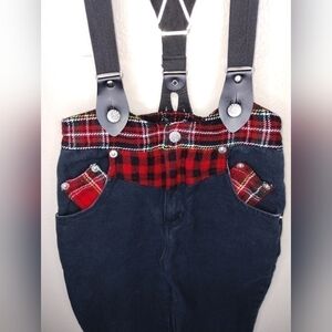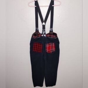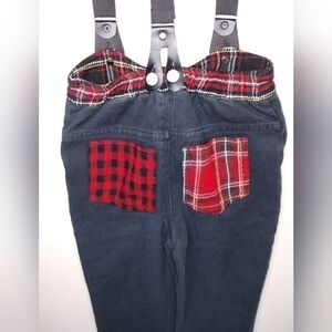 Vintage 80s Gitano Girls Kids Size 5 Jeans Suspenders Black Cotton Red Plaid