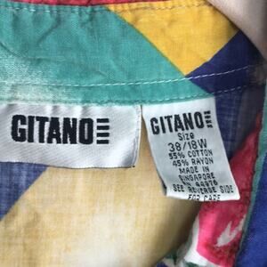 Vintage 80s Gitano hawaiian geometric button Up top sz 18W