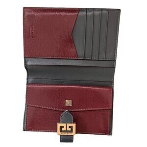 Vintage 80s Givenchy Red Gray Leather Compact Small Wallet