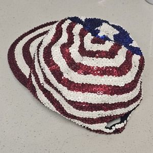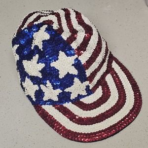 Vintage 80's Glam Sequins Baseball Cap Hat Red White Blue Stars Stripes USA