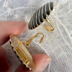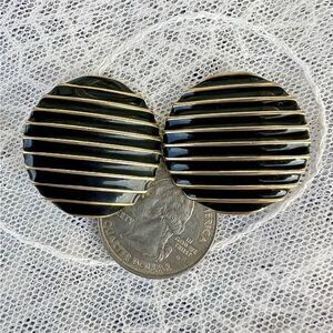 Vintage 80’s Gold & Black Enamel Striped Clip Earrings