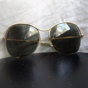 Vintage 80s Gold Metal Half Rim Glasses + Case
