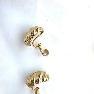 Vintage 80s Gold Tone Clip-on Half Hoop Twist Earrings