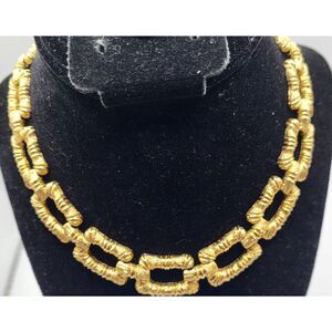 Vintage 80s Goldtone Bamboo Textured 15" Choker Necklace