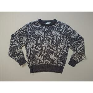 Vintage 80s Grandpacore Knit Sweater Brown Floral Medium London Fog USA Unisex