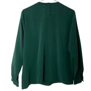Vintage 80s Granny Pintuck Pleated Blouse Size 12 Large Hunter Green Matte Satin