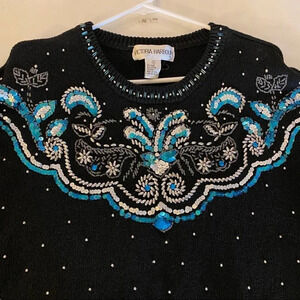Vintage 80s Grannycore Embellished Pullover Sweater Black Beaded Womens Medium