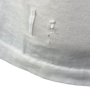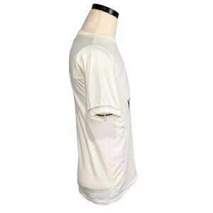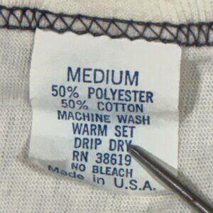 This vintage 1980s tee offers a humorous touch with its bold "Wine Women Walleye" graphic. Designed in a comfortable medium size, it's crafted from a balanced blend of polyester and cotton. Made in the USA, this shirt is both a nostalgic and stylish choice for casual outings or relaxed settings.
