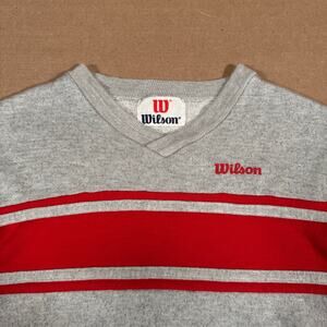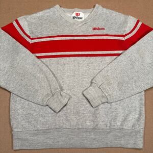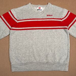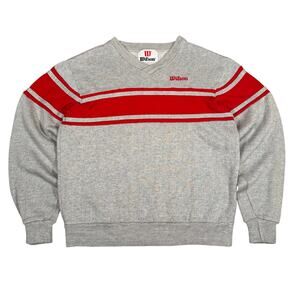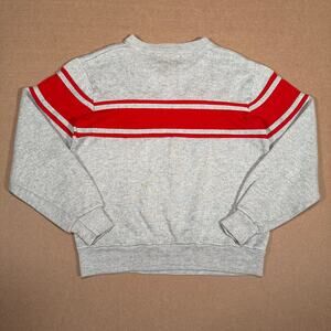 Vintage 80s Gray Red Stripe Sweatshirt V Neck Athletic Pullover Retro Sportswear