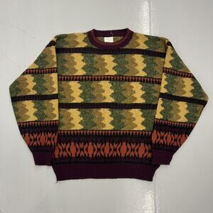 Vintage 80s Green/Yellow Acrylic Geometric Pattern Sweater