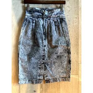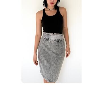 Vintage 80s Grey Acid Wash Pencil Skirt | High Waisted Punk Rock Statement