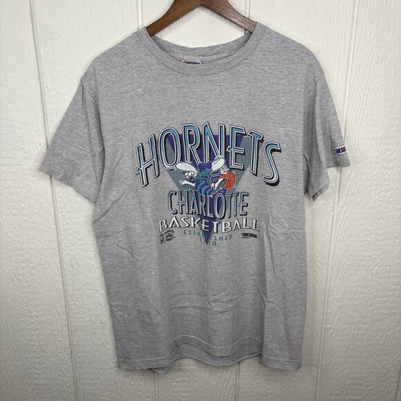 Vintage 80’s Grey Pinstriped Charlotte Hornets Tee Large