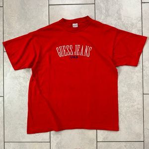 Vintage 80s Guess Spellout T-Shirt Size L Original Red Made In USA