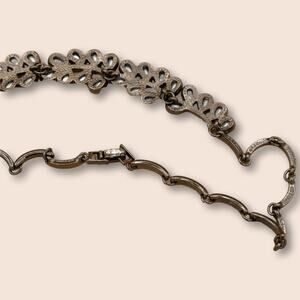 Vintage 80s Gunmetal Victorian Regency Rhinestone Choker Neclace. Excellent condition. Petal with chaining brackets and safety clasp. Perfect for your next special occasion.