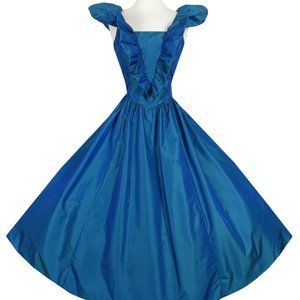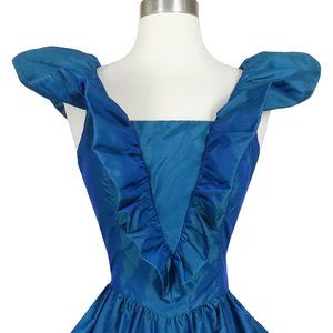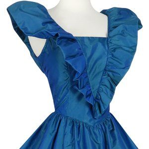 Vintage 80s Gunne Sax Blue Ruffle Taffeta Full Skirt Prom Party Dress M Medium