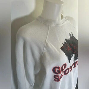Add a nostalgic touch to your wardrobe with this rare vintage 1980’s sweatshirt from H Wolf & Sons. This unique piece features a charming "Go Scotties" dog graphic, making it a true collector's item.