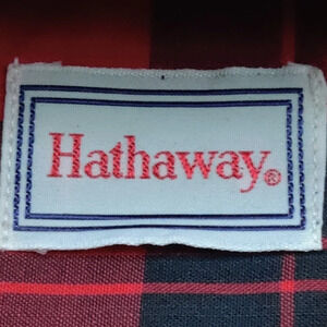Vintage 80s HATHAWAY Shirt Biddeford Poplin Red Black Plaid Button Down Men's Size XL