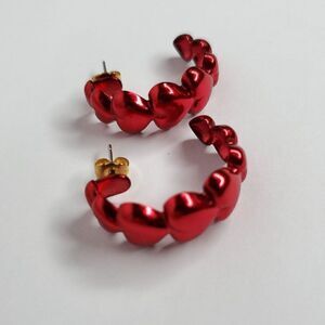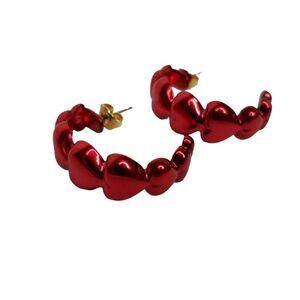 Vintage 80s Half Hoop Heart Earrings Matte Metallic Red Valentine Love