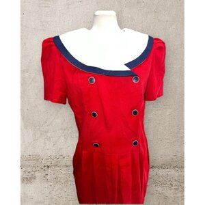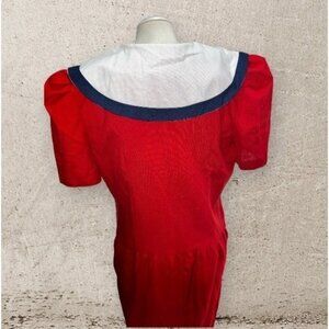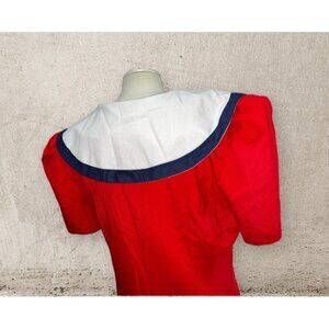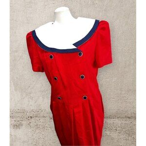 Vintage 80s Halmode Wide Collared Double Button Front Short Sleeve Midi Dress Sz