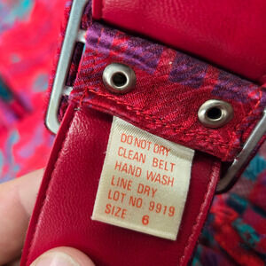 Vintage 80s Halston III Silk Floral Plaid Dress Red Pink Teal Belted Midi Size 4