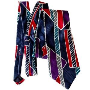 Vintage 80s Halston IIII retro abstract 100% silk tie necktie red purple 4" w