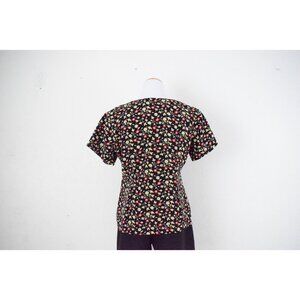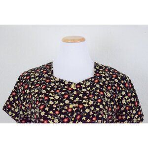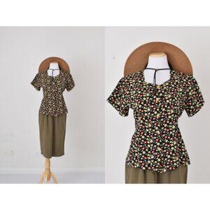 Vintage 80s Handmade Polyester Dark Floral Blouse