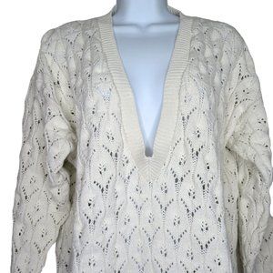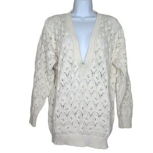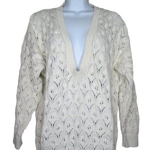 Vintage 80s Harot Pullover Cotton Sweater L White Open Knit V Neck Made in USA