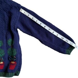 Vintage 80s Hartstrings Cardigan Sweater Girls size 6 Button Up Navy Cotton Christmas. Design: topiary trees. Turtleneck shirt is size 4 years. 100% cotton. Excellent vintage pre-owned condition.
