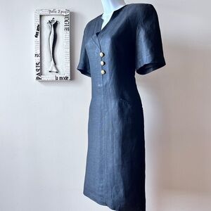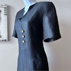 Vintage 80s Harvé Benard Short Sleeve Black Secretary Sheath Dress Size S