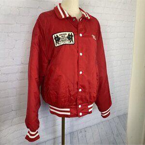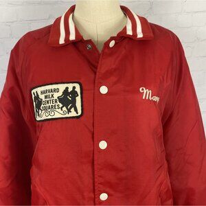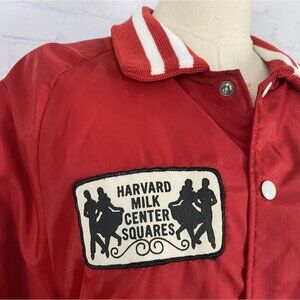Step into small-town Illinois history with this authentic vintage 1980s varsity jacket from the Harvard Milk Center Squares, a local square dancing troupe tied to the long-running Harvard Milk Days Festival. Rare piece of Illinois heritage & square dance history.