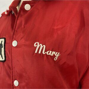 Left chest embroidery reading "Mary"