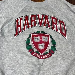 Vintage 80s Harvard Veritas Shield Grey Crewneck Sweatshirt Sz Large