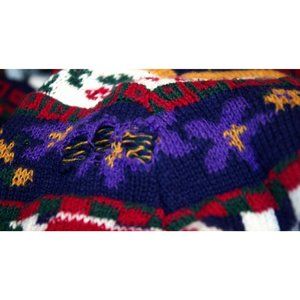 Vintage 80s Heartworks Sweater Striped Roses Checkered Long Size Medium Preppy