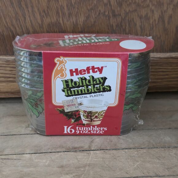 Factory Sealed Vintage 80's Hefty Holiday Tumblers 9 Oz Plastic 16 Count The Elegant Disposable. New old stock!
