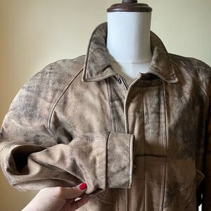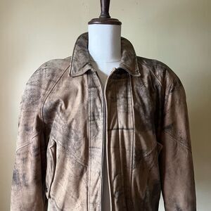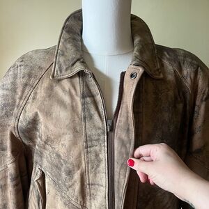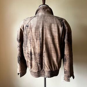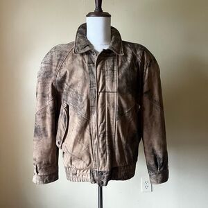 Vintage 80s Henry Huit Distressed Leather Bomber Jacket Tan Brown Moto Medium