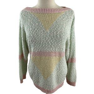 Vintage 80s Here's a Hug Knit Sweater Pastel Loose Knit Chenille