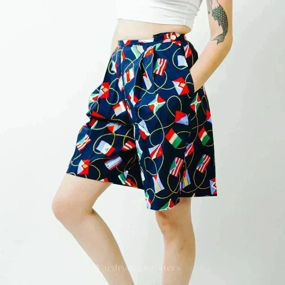 Vintage 80s Herman Geist Nautical High Rise Pleated Mom Shorts