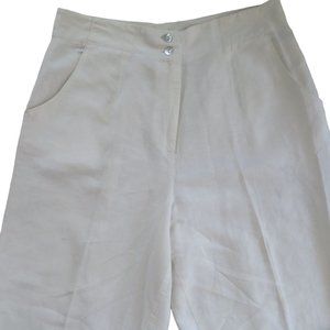 Vintage High Waist Pants S White Linen Pockets Button Zip Tapered Leg