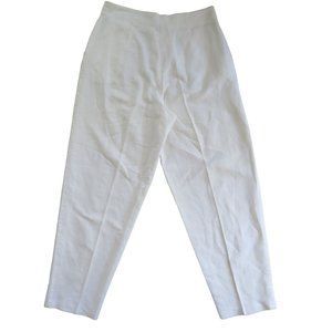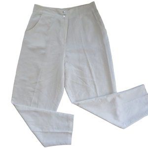 Vintage 80s High Waist White Linen Pants S Pockets Button Zip Tapered Leg USA