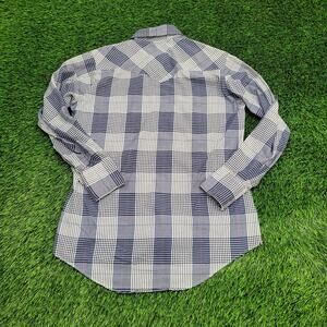 Elevate your style with our vintage 80s Holt shadow pearl-snap shirt, large with long tails. Shop now!