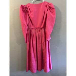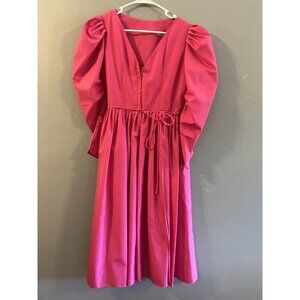 Vintage 80s Hot Pink Formal Prom Dress Size 12 Puff Sleeves Calf Length *spot