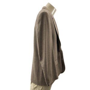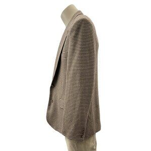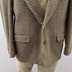 Tags: Vintage blazer, men's jacket, houndstooth wool, single button blazer, professional attire, men's fashion, classic style, formal wear, business jacket, notch lapel, wool blazer, men's outerwear, vintage clothing, houndstooth pattern