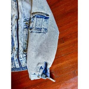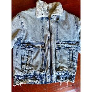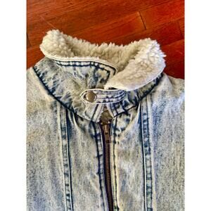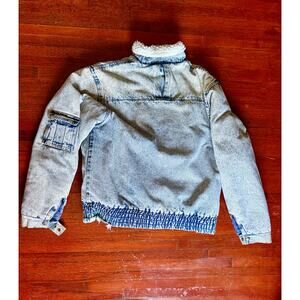 Vintage 80’s Hugo Valentino Acid Wash Denim Sherpa Lined Jacket Medium Fall Punk