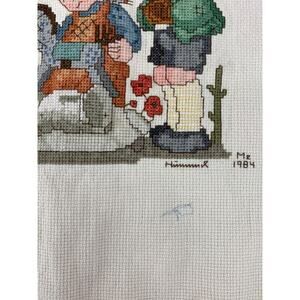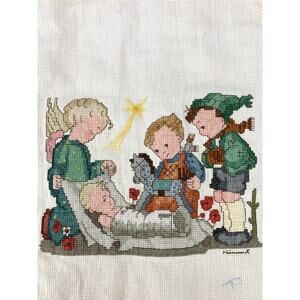 Vintage 80s Hummel Cross Stitch Christmas Tree Skirt Hand Made Completed **READ*