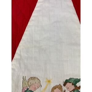 Red quilted with inset Hummel cross stitch Natavity scene on one side
