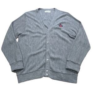 Vintage 80s IZOD Cardigan Sweater Men's Size Large Gray Grandpa Made in USA